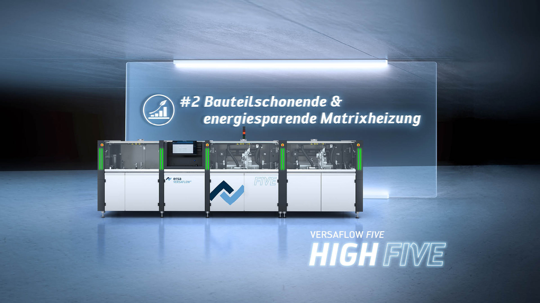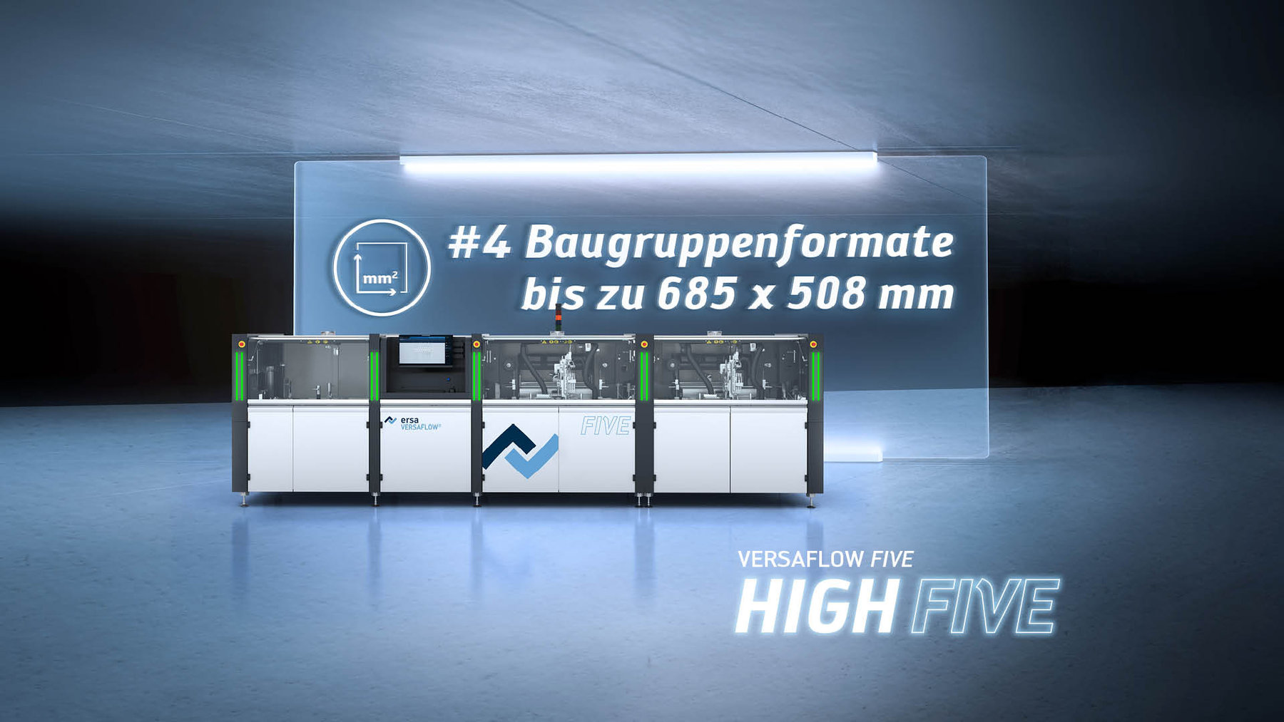 Die VERSAFLOW FIVE verkörpert eine neue Ära im High-End-Selektivlöten mit maximaler Formatflexibilität und Energieeffizienz, kürzeren Rüstzeiten, höherer Produktivität - und das bei maximaler Qualität, Prozessstabilität und Bedienkomfort. Sie deckt ein extrem breites Spektrum an Baugruppengrößen ab und eröffnet Elektronikfertigern völlig neue Produkt- und Auftragsoptionen, ohne Maschinenwechsel. Damit ist sie die ideale Lösung für Unternehmen, die heute Höchstleistungen erzielen und morgen wettbewerbsfähig bleiben wollen.
