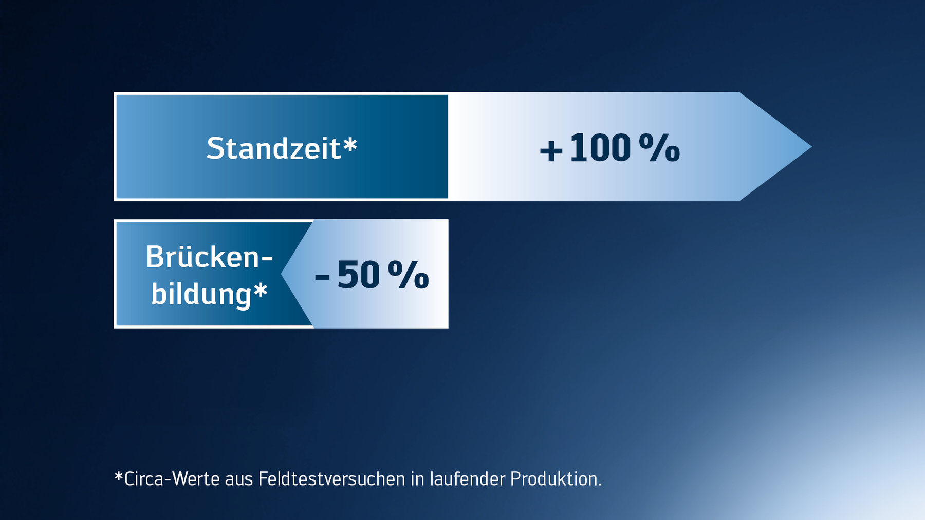 - erhöhte Standzeit (bis zu zweimal längere Betriebsdauer der Düsen)