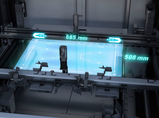 - Für Baugruppenformate bis zu 685 x 508 mm oder 2 PCBs mit bis zu 350 x 508 mm