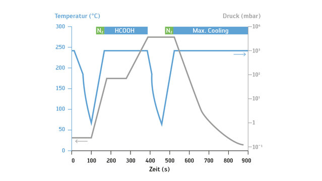 Über die benutzerfreundliche Prozesssoftware können sämtliche Parameter, vom Evakuieren der Prozesskammer und der Steuerung der Prozessgase, über das Temperaturprofil bis zur geregelten Abkühlung in Stickstoffatmosphäre individuell definiert, gespeichert und angepasst werden. Jeder Prozessschritt wird lückenlos dokumentiert und kann jederzeit für Qualitätsnachweise oder Prozessoptimierungen abgerufen werden. Dadurch bleibt der gesamte Lötvorgang transparent, reproduzierbar und rückverfolgbar. Dies ist ein wesentlicher Vorteil für Anwendungen mit höchsten Qualitätsanforderungen.