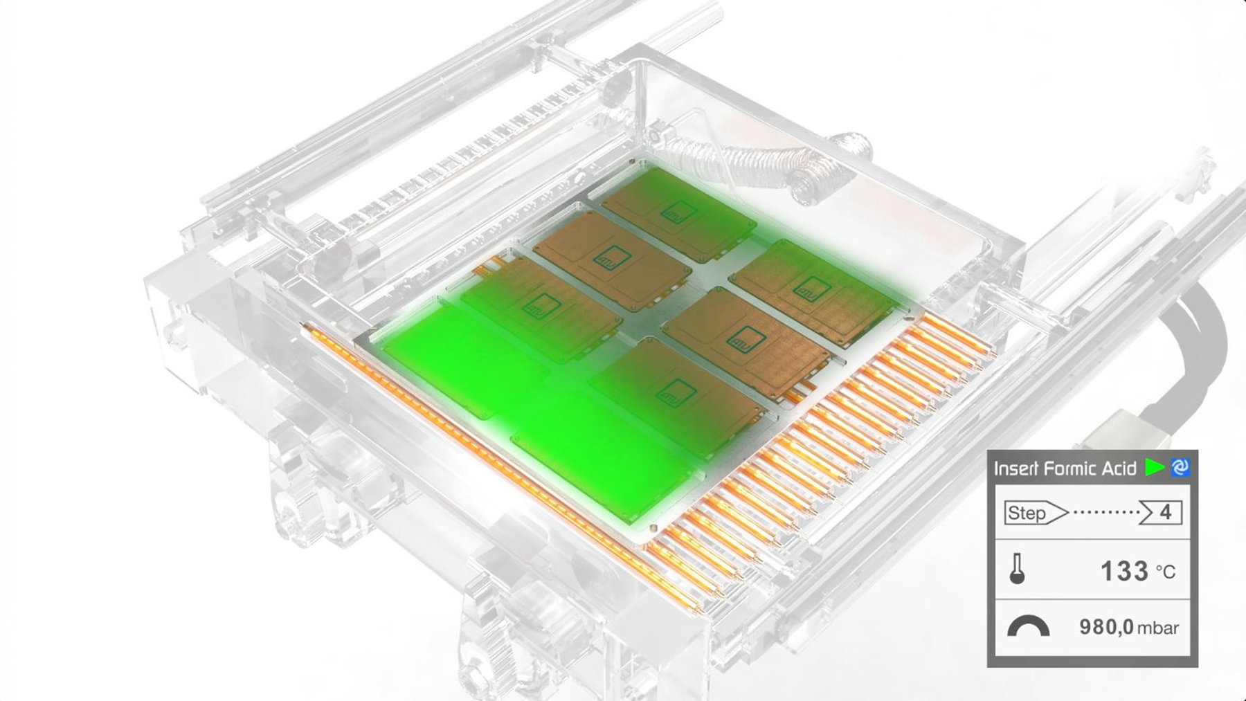 Ab einer Temperatur von etwa 180 °C entfernt Ameisensäure zuverlässig Oxidschichten von Metallen und ermöglicht so eine optimale Benetzung. Das nachfüllbare System ohne bewegliche Teile minimiert den Wartungsaufwand und erhöht die Betriebssicherheit. Auf diese Weise wird eine konstante Prozessstabilität erreicht - entscheidend für gleichbleibende Qualität und maximale Reproduzierbarkeit in der Serienfertigung.