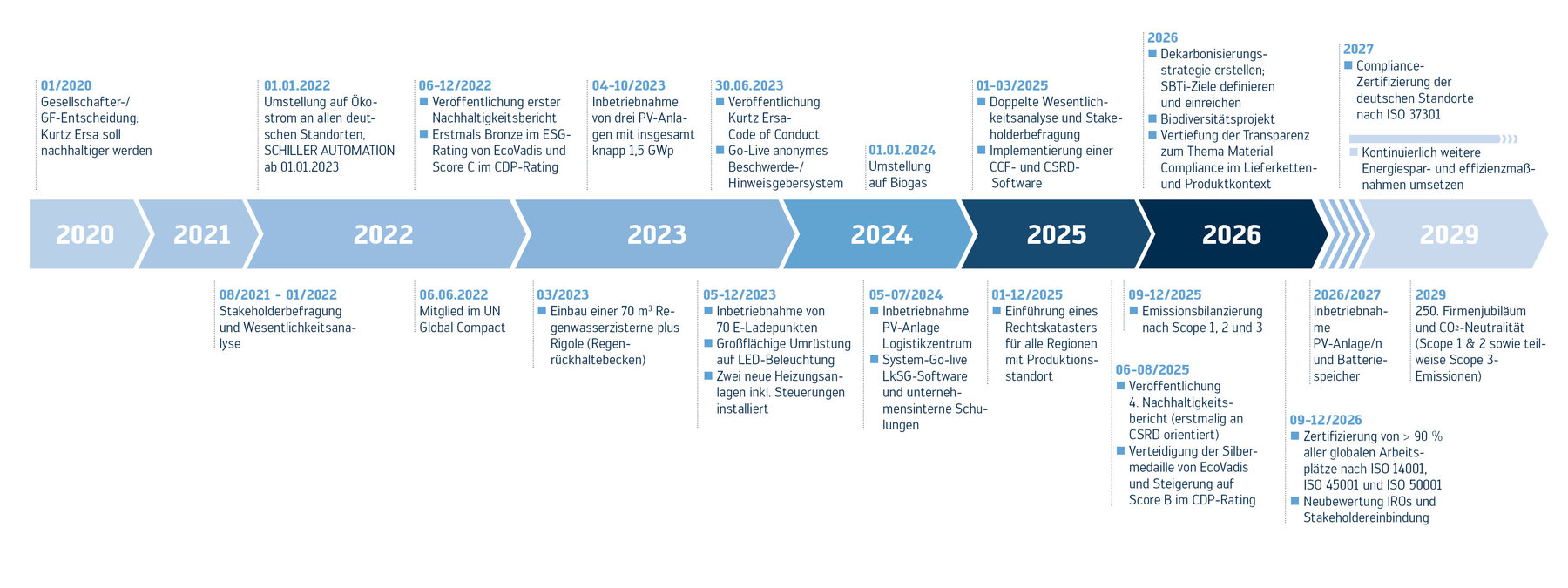 - Veröffentlichung eines freiwilligen, jährlichen Nachhaltigkeitsberichts (CSRD-basiert ab 2024, frühere Nachhaltigkeitsberichte orientierten sich am GRI-Standard)